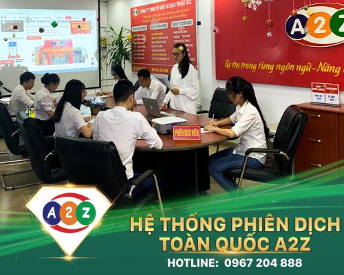 Công Ty Phiên dịch – Dịch Thuật A2Z – Địa chỉ cung cấp dịch vụ phiên dịch, dịch thuật quốc tế trên toàn quốc. Với nhiều năm liền nhận giải doanh nghiệp xuất sắc trong lĩnh vực phiên dịch, dịch thuật… do khách hàng và cơ quan chức năng đánh giá. Với hơn 100 điểm văn phòng phiên dịch, dịch thuật trên cả nước cho thấy sự lớn mạnh của A2Z. Công Ty Phiên dịch – Dịch Thuật A2Z – một trong những công ty hàng đầu, uy tín nhất trên cả nước trong lĩnh vực kinh doanh dịch vụ phiên dịch, dịch thuật. nhiều phiên dịch viên và khoảng 3000 CTV được phân rộng khắp cả nước, đây là những con số nói lên sự lớn mạnh của A2Z và mục tiêu đưa dịch vụ phiên dịch, dịch thuật đến tất cả khách hàng có nhu cầu liên quan đến phiên dịch, dịch thuật.