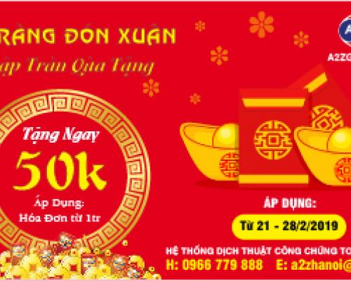 Từ ngày 21-28/2 khi khách hàng tới sử dụng dịch vụ dịch thuật, công chứng tại tất cả các cơ sở của Dịch Thuật A2Z với hóa đơn từ 1 triệu quý khách sẽ được chiết khấu ngay 50k.