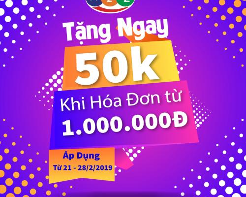 Tặng ngay 50k, chiết khấu thẳng vào bill của khách hàng.