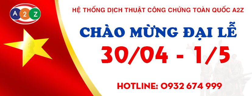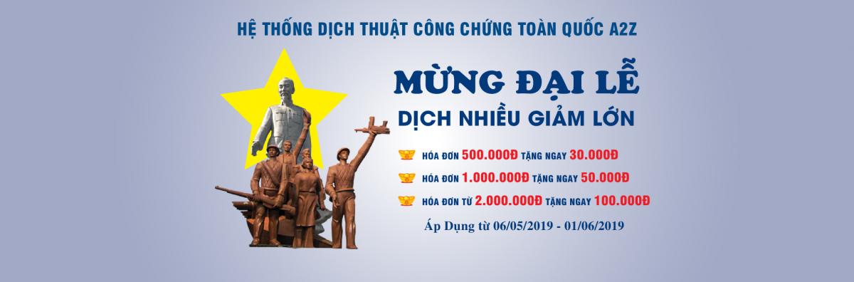 TƯNG BỪNG CHÀO ĐÓN QUỐC LỄ VỚI CHƯƠNG TRÌNH QUÀ TẶNG TRI ÂN KHÁCH HÀNG SỬ DỤNG DỊCH VỤ DỊCH THUẬT. MỪNG ĐẠI LỄ - DỊCH CÀNG NHIỀU GIẢM CÀNG LỚN TRÊN HỆ THỐNG DỊCH THUẬT TOÀN QUỐC A2Z DỊP 30/4 - 1/5.